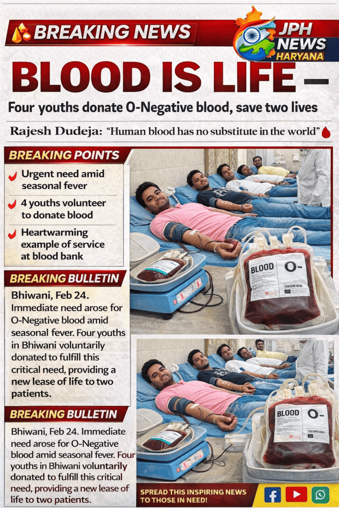 blood donation, O negative blood, Bhiwani news, Haryana news, save life, blood bank, Rajesh Dudeja, youth inspiration, health emergency, seasonal fever