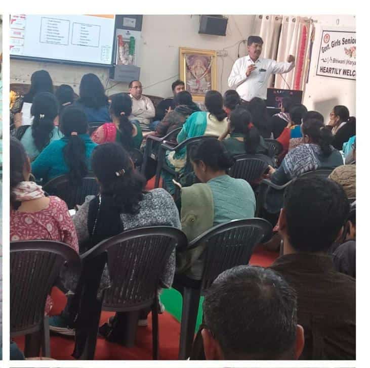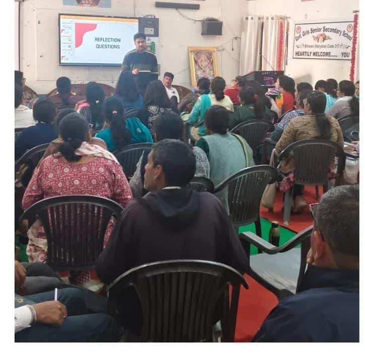 जनता तो पूछेगी, मिंटू सैनी।भिवानी : डाइट भिवानी की ओर से आज पीएम श्री राजकीय कन्या वरिष्ठ माध्यमिक विद्यालय में “सहकर्मी शिक्षण समुदाय ” विषय पर एकदिवसीय कार्यशाला का सफल आयोजन किया गया। कार्यशाला का उद्देश्य शैक्षणिक गुणवत्ता में सुधार, सहयोगात्मक अधिगम को प्रोत्साहन तथा विद्यालय स्तर पर शैक्षिक नेतृत्व को सुदृढ़ करना रहा।कार्यशाला की अध्यक्षता डाइट प्रभारी श्रीमती मोनिका ने की। उन्होंने अपने मार्गदर्शन में प्रतिभागियों को सहकर्मी शिक्षण समुदाय की अवधारणा को व्यवहारिक रूप में लागू करने के लिए प्रेरित किया।